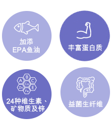 - 加添EPA鱼油*:改善体重1及胃口问题2,抑制炎症反应
